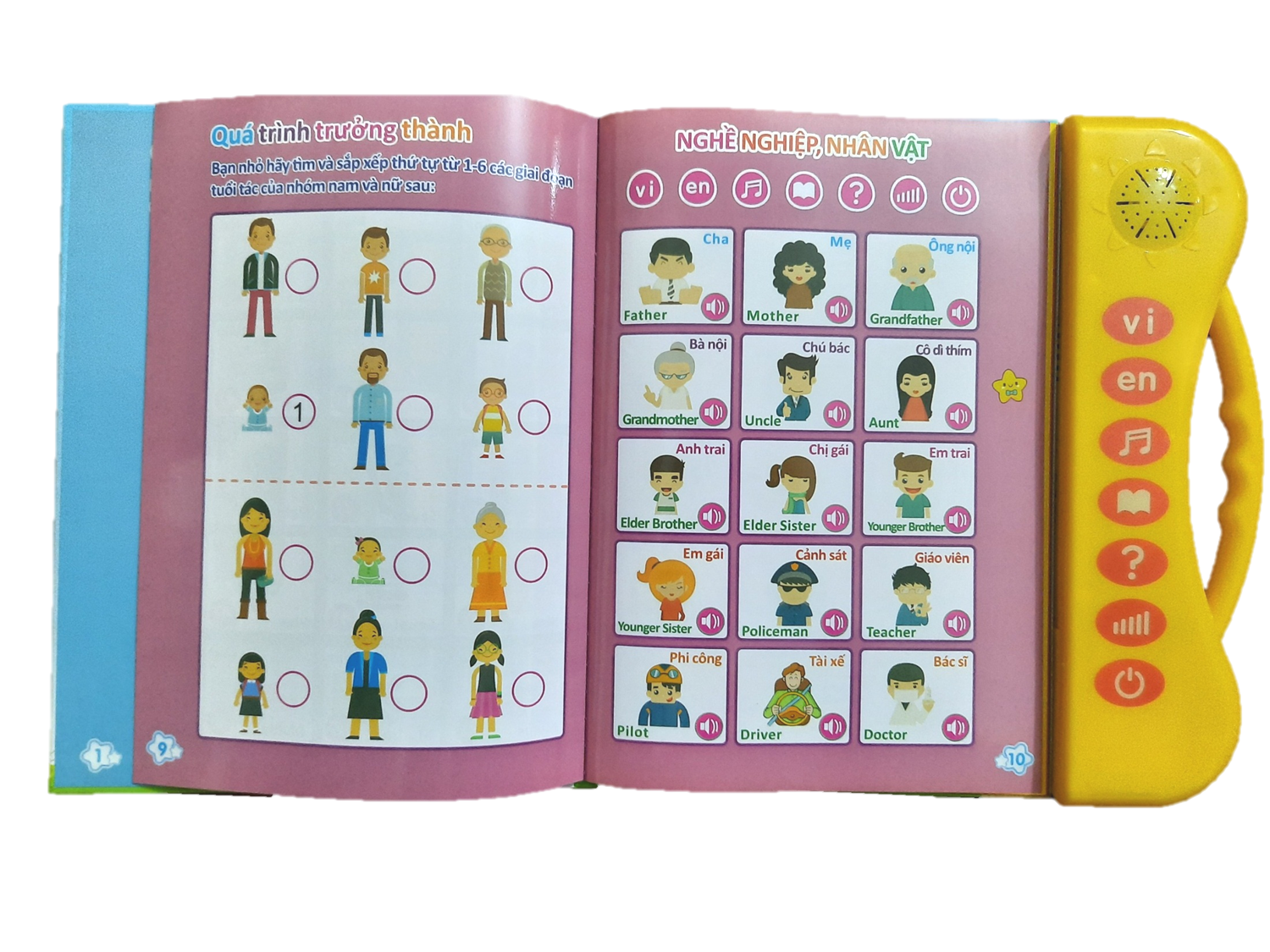 Qua Viêc bấm nút ở mỗi trang có thể thưởng thức nội dung bất kì của trang đó. Chỉ cần ấn vào những gì bé thích, tự động sẽ có 1 giọng nói nói cho bé biết đó là chữ gì, là gì khiến việc học của bé trở nên dễ dàng