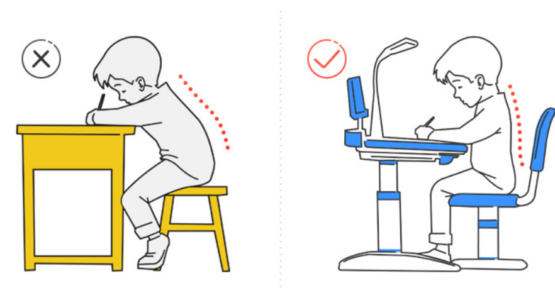 Nếu một chiếc ghế quá cao sao với bàn sẽ khiến trẻ khom lưng xuống để viết và vì thế sẽ dễ gây nên gù lưng. Ngược lại, nếu chiếc bàn quá cao so với ghế, mắt trẻ sẽ gần với mặt bàn và mặt vở dễ gây cận thị. Nếu ghế dễ xê lệch, trẻ sẽ dễ nghiêng người, nhoài người theo bàn hoặc tì ngực vào bàn khiến chúng dễ bị vẹo cột sống và khó thở.